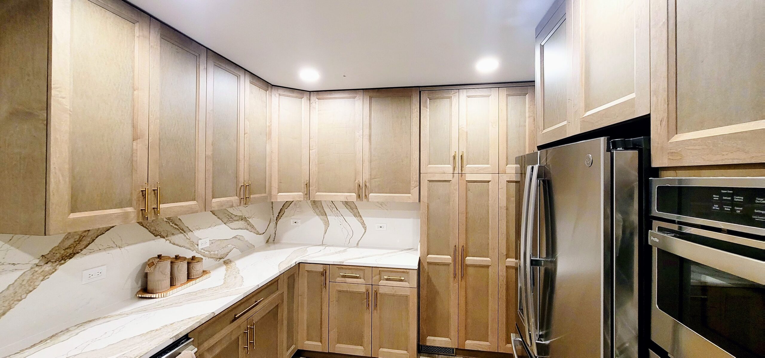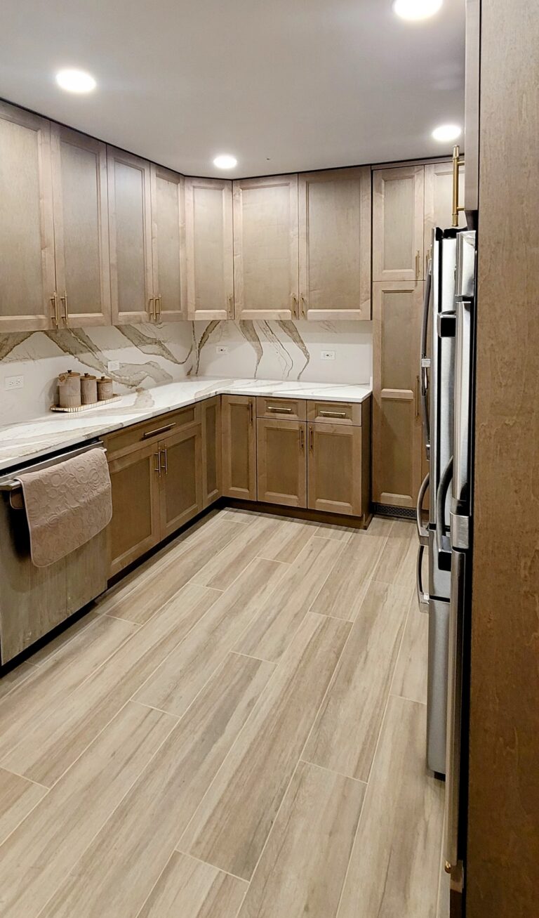 To design a kitchen that suits their everyday needs and expresses their personal taste, Arlington Heights homeowners collaborated with CabinetLand. The main goal of the project was to put in custom cabinets in warm, natural wood tones that add attractiveness to the area.