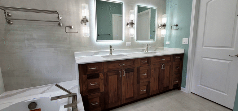 Expert craftsmanship from CabinetLand brings every detail to perfection, from custom cabinetry installation to precise tile work. Premium finishes, smart storage solutions, and thoughtful lighting design create perfect balance between beauty and daily functionality. Families now enjoy a personal retreat where they can unwind and refresh in complete comfort and sophisticated style.