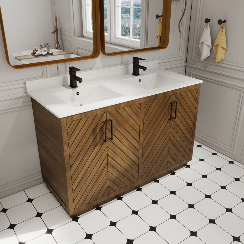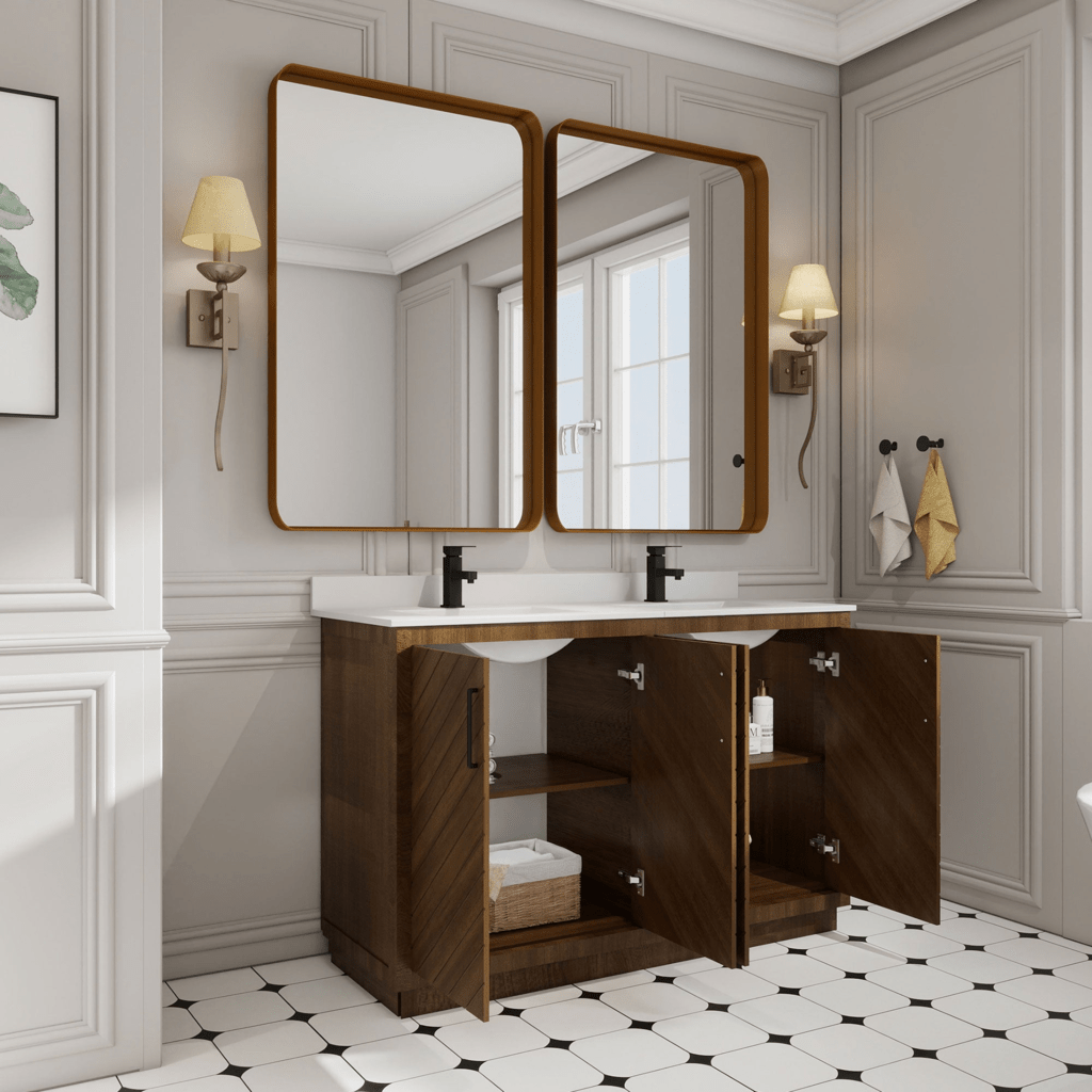 Zoom 48″ Double Vanity Cabinets – Dark Walnut